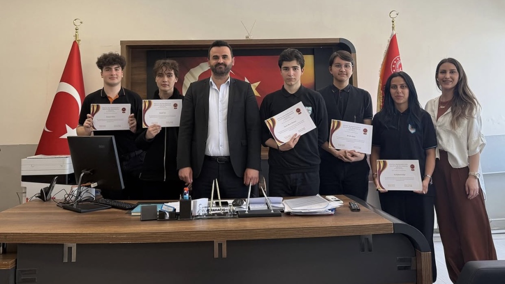 “Dijital Dönüşüm ve Geleceğin Meslekleri” konulu eTwinning projemizi başarıyla tamamlayan öğrencilerimize katılım sertifikaları, okul müdürümüz tarafından takdim edildi.